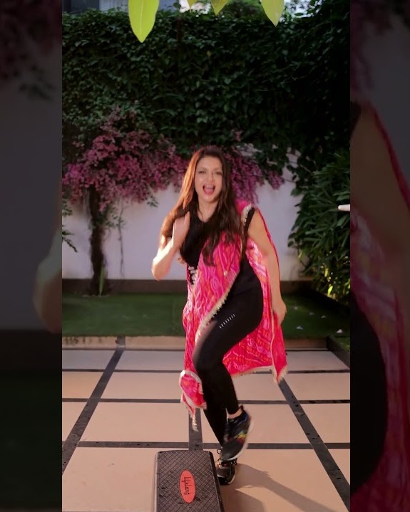 Bhagyashree’s video is more than just a dance—it’s a full-body cardio session disguised as celebration. By combining step-up routines with Garba moves, she created a workout that’s both effective and enjoyable. The beats of Chogada, a popular Navratri track, added vibrancy to the session, making it feel more like a dance party than a gym drill.