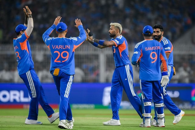 Hardik Pandya led the bowling effort with two wickets, while Jasprit Bumrah, Arshdeep Singh, Varun Chakravarthy, and Axar Patel each contributed with crucial breakthroughs.