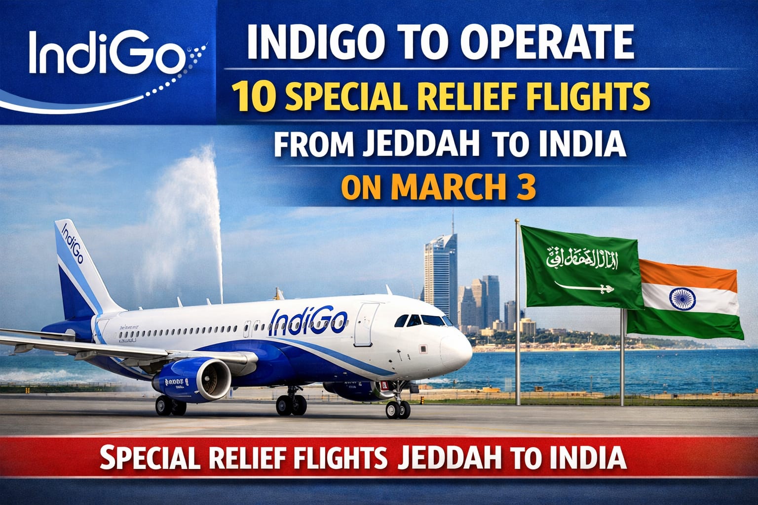 India’s largest airline, IndiGo, has announced a major humanitarian initiative to assist citizens stranded in Jeddah due to the ongoing Middle East crisis. On March 3, 2026, the carrier will operate 10 special relief flights to multiple Indian cities, coordinated with the Consulate General of India in Jeddah.