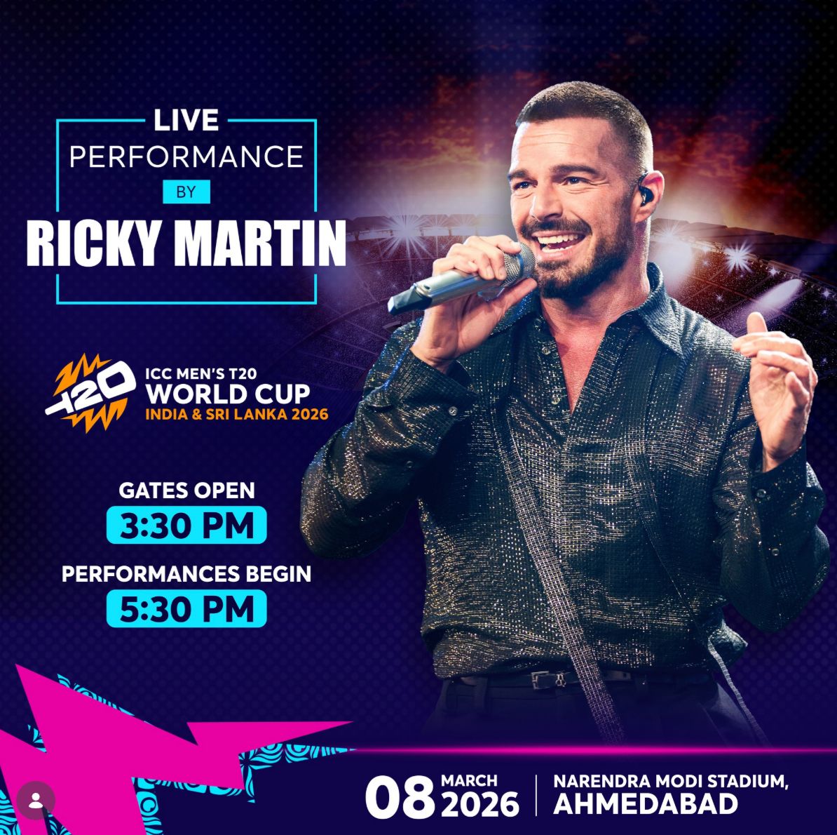 • Ricky Martin to perform at India vs New Zealand T20 World Cup 2026 final