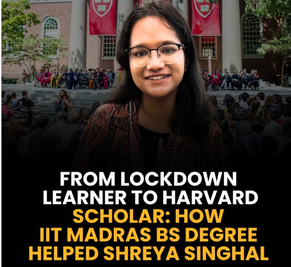 Shreya Singhal, an IIT Madras BS graduate in Data Science, transformed her lockdown learning journey into global success. Disillusioned with traditional classroom teaching, she embraced IITM’s online BS program, later becoming a teaching assistant, and eventually pursued advanced studies at Harvard, emerging as an education consultant and thought leader.