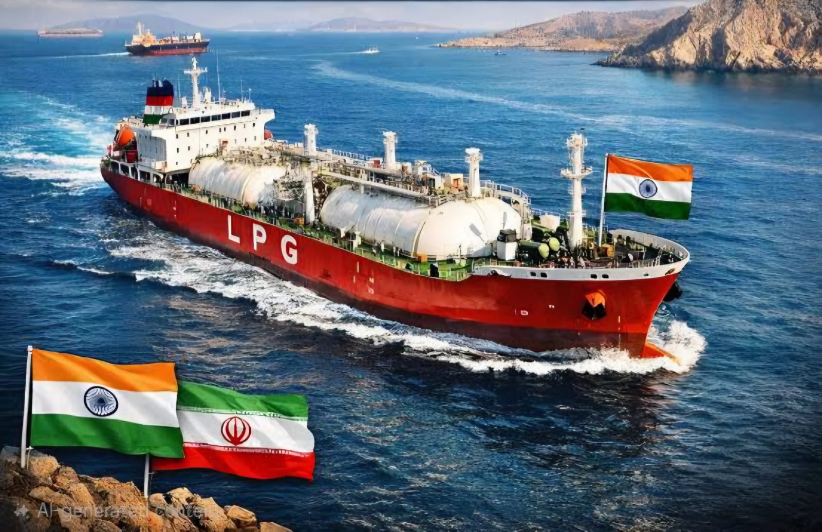Two LPG tankers: Pine Gas (IOC) and Jag Vasant (BPCL), loaded and anchored in Gulf