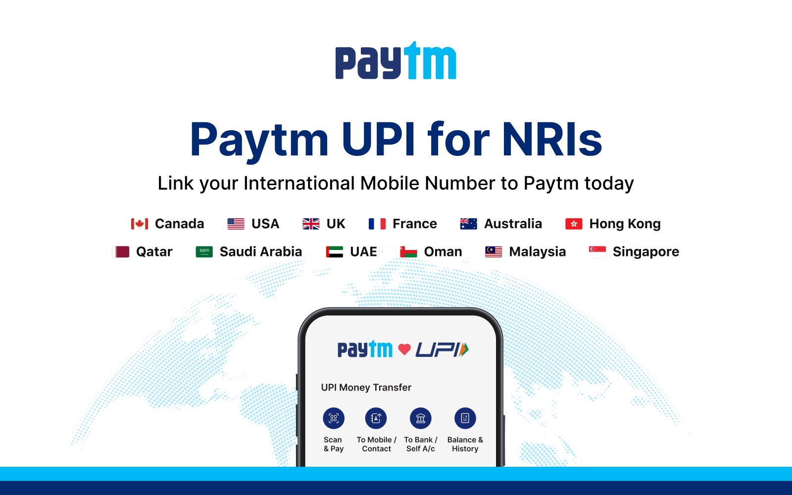 NRIs from select countries can log into the Paytm app using their international mobile number. Once verified, they can link their NRE or NRO bank accounts to access UPI services. This allows them to make payments at shops, restaurants, and online platforms in India by scanning QR codes or using UPI IDs.
