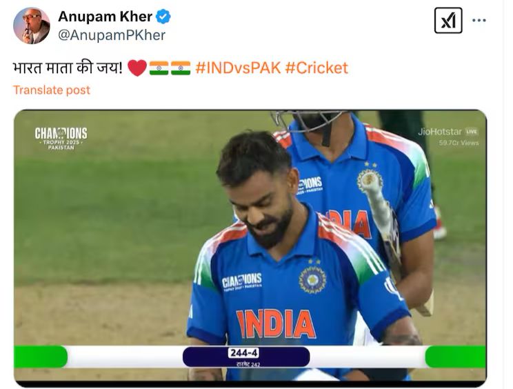 In a thrilling encounter at the ICC Champions Trophy 2025, Team India triumphed over Pakistan by six wickets, led by Virat Kohli’s remarkable century. The match saw Kohli score an unbeaten 100, propelling India to chase down Pakistan’s total of 241. This victory has sparked a wave of congratulations from celebrities across the nation.