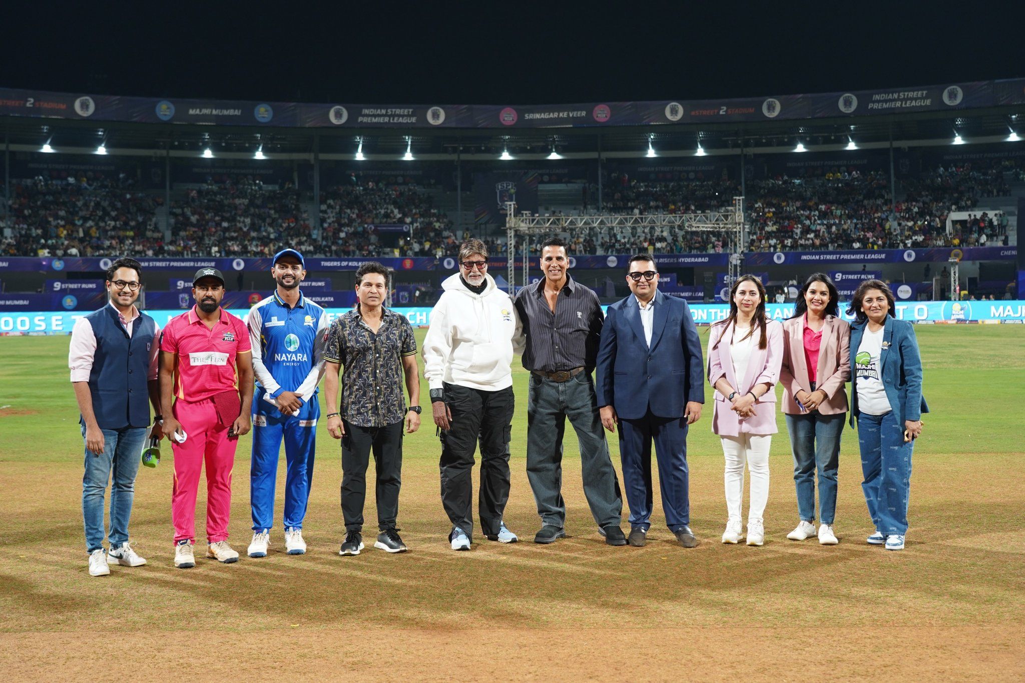 The grand finale of the Indian Street Premier League (ISPL) Season 2 brought together cricket legend Sachin Tendulkar and Bollywood stars Amitabh Bachchan and Akshay Kumar at the Dadoji Konddev Stadium in Thane. Majhi Mumbai triumphed with a nail-biting three-wicket victory over Srinagar Ke Veer. Skipper Vijay Pawale played a crucial role in securing the win, while the event was further enhanced by electrifying performances from DJ Chetas and singer B Praak. This star-studded evening celebrated the blend of cricket and entertainment, marking a memorable end to the tournament.