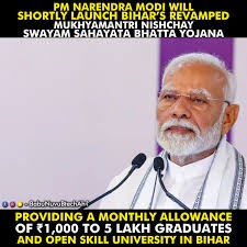 In a significant move to empower Bihar’s youth, Prime Minister Narendra Modi announced a monthly financial aid of Rs 1,000 under the revamped Mukhyamantri Nishchay Svyam Sahayata Bhatta Yojana. This initiative targets 5 lakh graduates annually, aiming to provide economic support and skill training for two years.