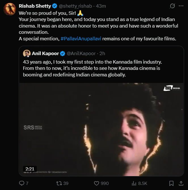 Anil Kapoor’s tribute is more than nostalgia—it’s a recognition of Kannada cinema’s transformation from regional storytelling to global phenomenon. His words celebrate both his personal journey and the industry’s evolution, reminding audiences that Indian cinema thrives on diversity, innovation, and the legacy of artists across generations.