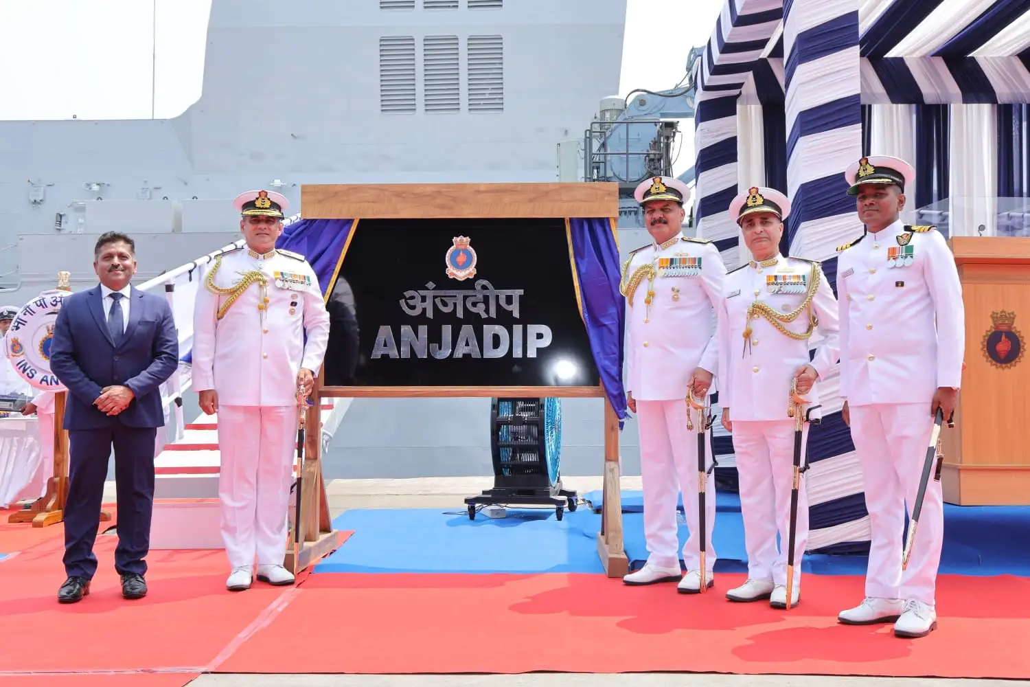 The warship was commissioned by Admiral Dinesh K Tripathi, Chief of the Naval Staff, Indian Navy, in the presence of senior Navy and GRSE officials. INS Anjadip was earlier delivered to the Navy on December 22, 2025, and was the fifth warship delivered by GRSE in that calendar year.
