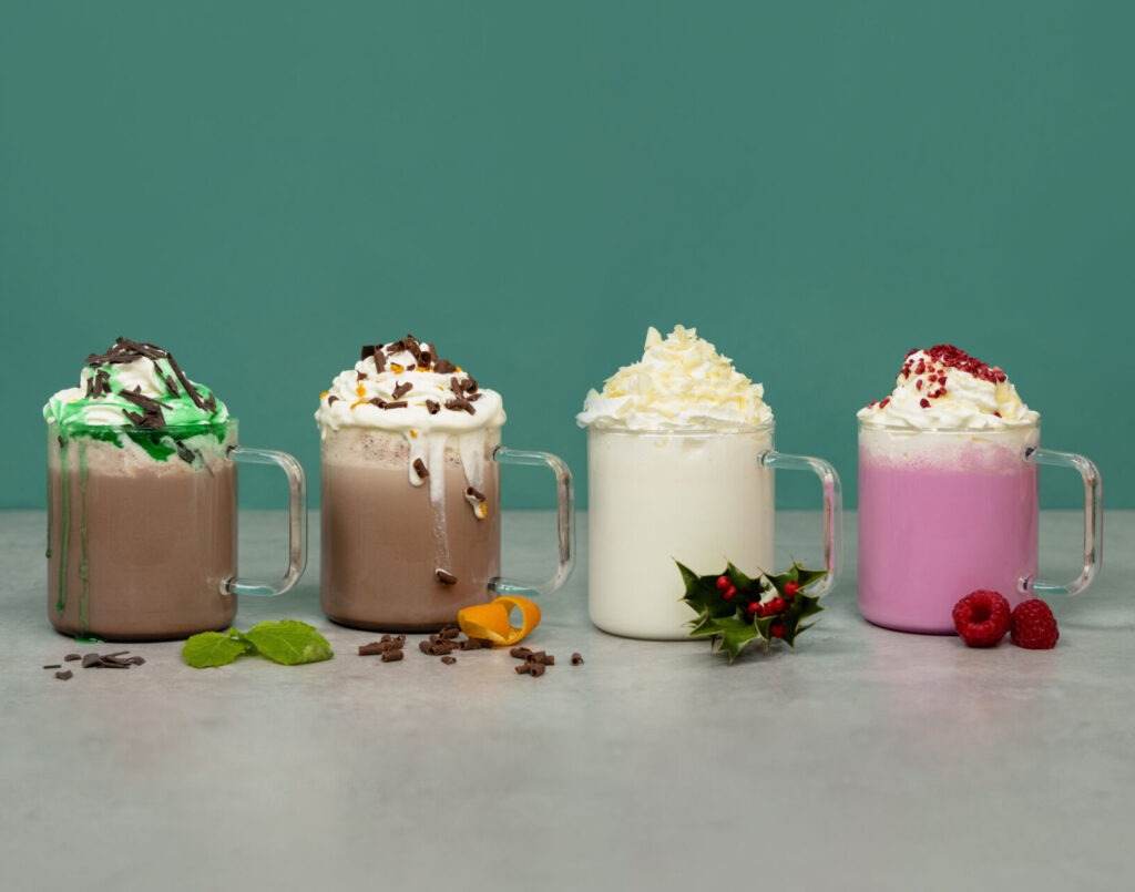 Layering is key, with oversized knits and textured fabrics mimicking the warmth of a winter drink.