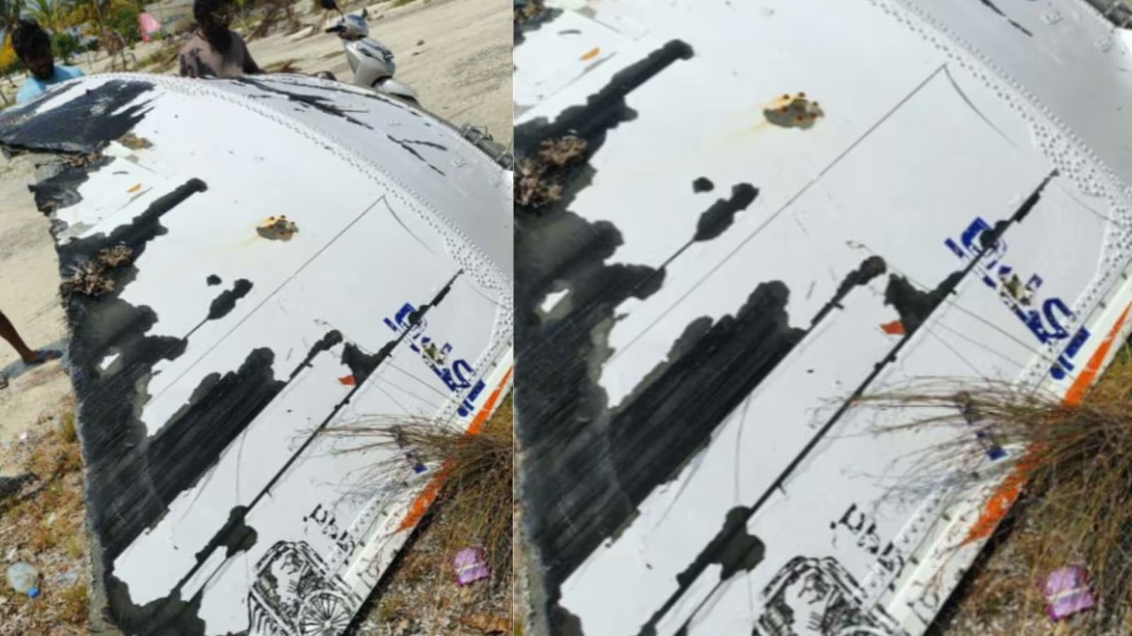 Identification: ISRO logo and national emblem visible on debris.