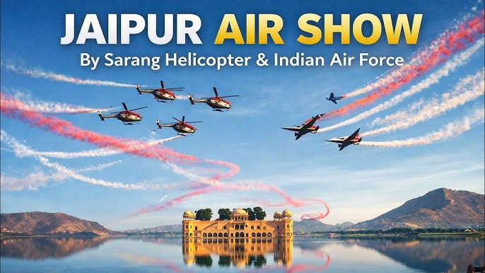 Jaipur witnessed a dazzling Indian Air Force air show over Jal Mahal on February 20 and 22, 2026. Surya Kiran and Sarang teams enthralled spectators with synchronized aerobatics, colorful smoke formations, and precision maneuvers. The event celebrated courage, discipline, and national pride, drawing massive crowds and inspiring youth across Rajasthan.