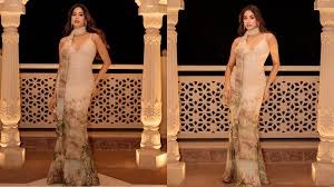 Bollywood star Janhvi Kapoor stole the spotlight at a glamorous event in Gujarat, where she wore an exquisite gown inspired by the lush jungle and nature. The sleeveless and strapless dress, from Elie Saab’s Spring 2025 Ready-to-Wear collection, featured intricate sequin work with tree, leaf, and floral motifs.