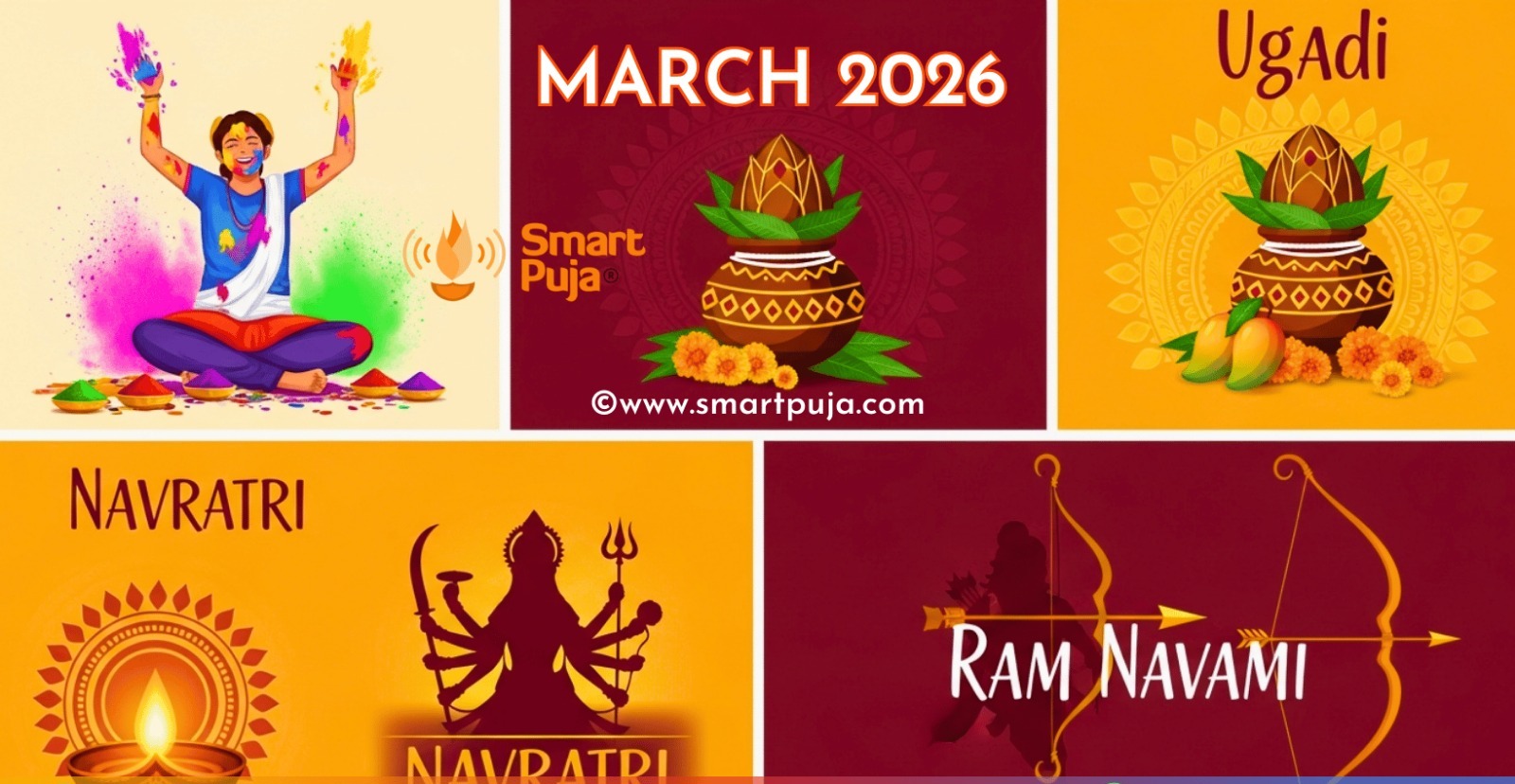 Gudi Padwa & Ugadi: March 20, 2026; celebrated as the Hindu New Year in Maharashtra and Andhra Pradesh/Karnataka.