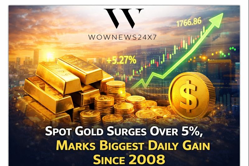 Spot gold witnessed a dramatic surge in global trading, climbing over 5% and heading toward its biggest daily gain since the financial crisis of November 2008. The sharp rally underscores renewed investor appetite for safe-haven assets as markets grapple with heightened geopolitical risks and economic uncertainty.