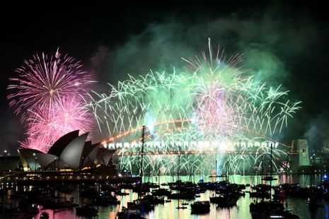 Sydney spectacular: 40,000 pyrotechnics over 7 km across harbour landmarks.