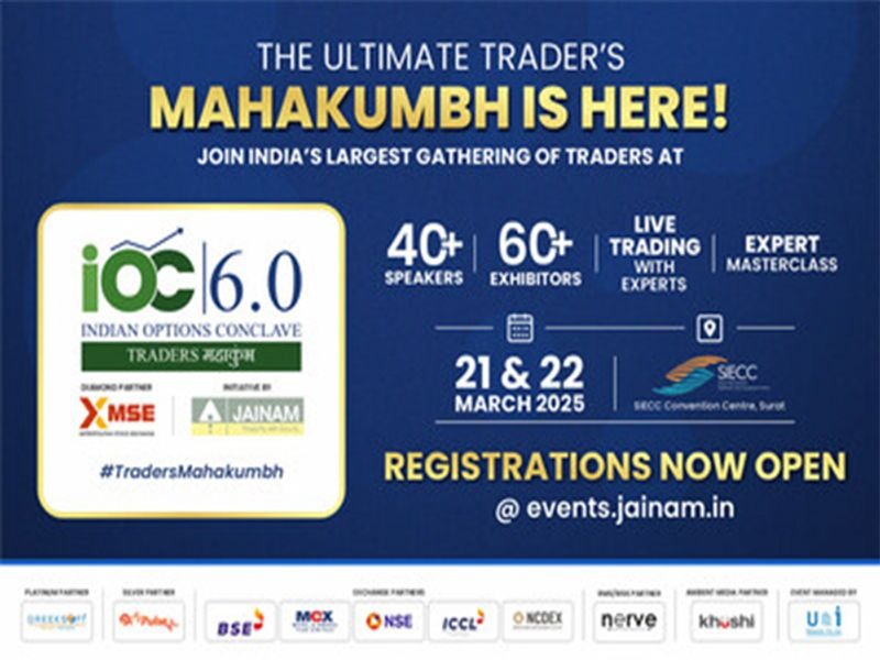 Jainam Broking Limited will organize the Indian Options Conclave 6.0 (IOC 6.0), India's biggest options trading conclave, on March 21-22, 2025, in Surat, Gujarat. This year's convention, 'Traders Mahakumbh,' will attempt a Guinness World Record for the "Largest Financial Lesson." IOC 6.0 will include over 40 industry expert speakers, such as Manu Bhatia and Vishal Malkan, and over 60 exhibitors that will display the newest trading technologies and tools. The convention will discuss topics including options basics, risk management, and AI-powered analytics. It is likely to see over 12,000 participants, as compared to 10,000 last year from 276 Indian cities. The event features live trading sessions, masterclasses, and networking sessions, which make it a hallmark event in the Indian financial arena.