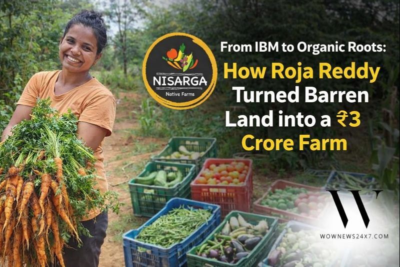 Former IBM engineer Roja Reddy quit her corporate career in 2020 to co-found Nisarga Native Farms in Karnataka’s drought-prone Challakere-Chitradurga belt. Despite family resistance and harsh conditions, she restored 50 acres of ancestral land organically, cultivating 40+ crops and clocking ₹3 crore revenue in FY25, proving purpose driven farming can thrive.